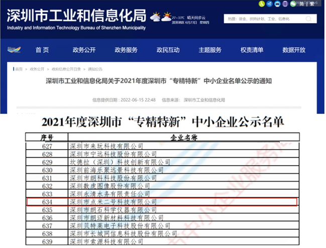 近日,點米科技集團旗下全資子公司“深圳市點米二號科技有限公司”上榜深圳工信局《2021年度深圳市“專精特新”中小企業公示名單》,順利通過深圳市“專精特新”中小企業評定